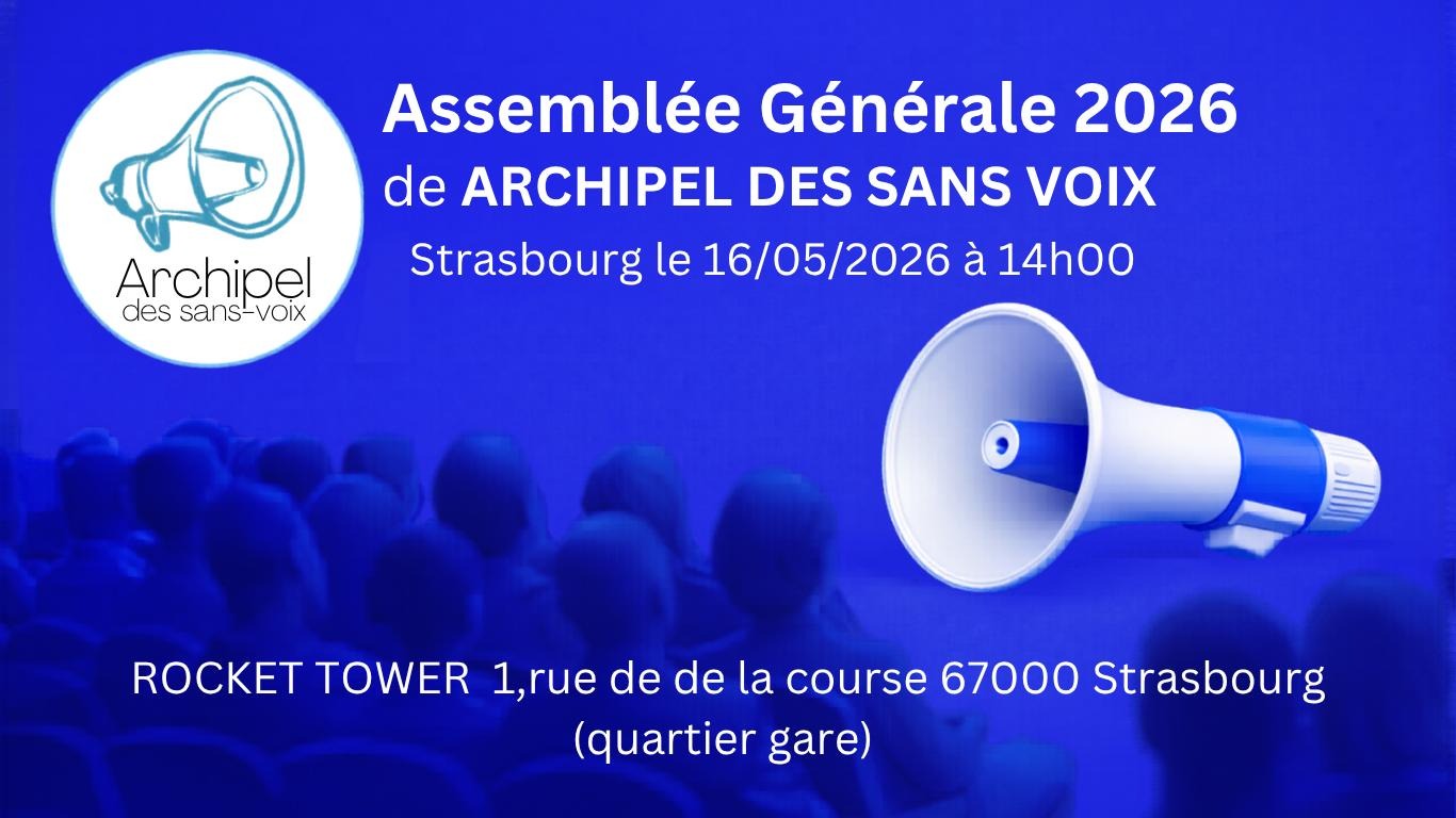La prochaine Assemblée Générale de l’association « Archipel des Sans-Voix » se tiendra en présentiel le samedi 16 mai 2026 à 14h00 à Strasbourg.