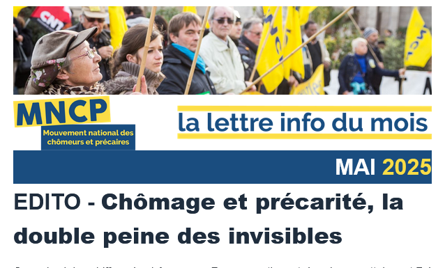 Cet édito a été diffusé par le MNCP (Mouvement National des Chômeurs et Précaires) dans sa dernière « lettre info » du mois de mai. Nous le relayons pour participer à sa diffusion la plus large possible.