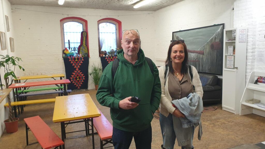 Guillaume, Christian et moi-même avons découvert ce lieu atypique de solidarité, de fête, de musique, de restauration, d’espace culturel et d’aide sociale associé à une démarche militante et écologique.
