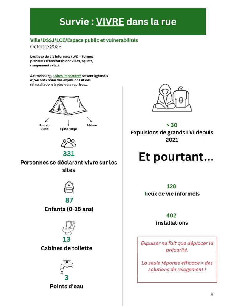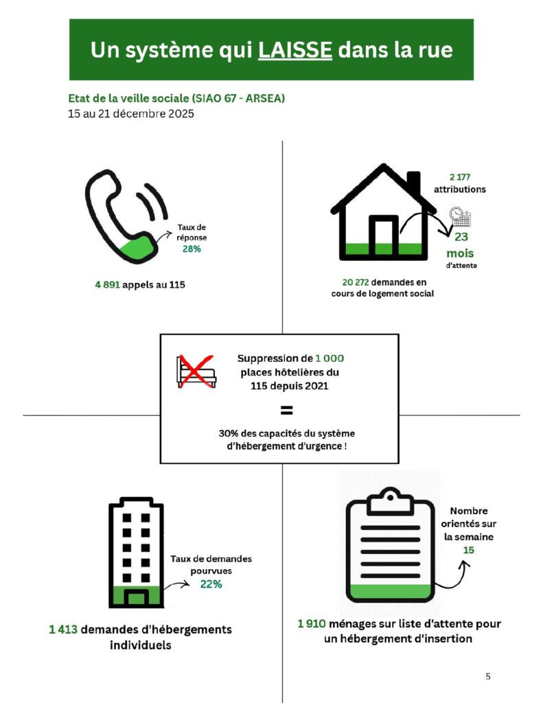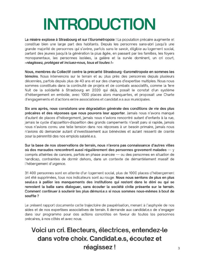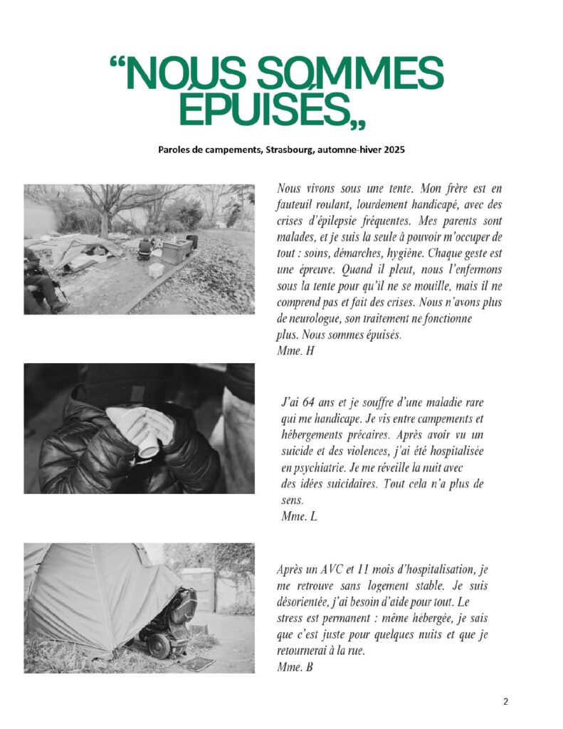 Le Collectif inter-associatif contre la précarité Strasbourg Eurométropole* s’est créé en 2020 à la suite de la première « Nuit de la Solidarité » organisée dans la ville. Fort de l’expérience de ses 26 membres dont certains interviennent sur le terrain depuis plus de 40 ans, le Collectif inter-associatif a rédigé un rapport en forme « d’état de lieux » pour rendre compte de la réalité de la précarité à Strasbourg en ce début 2026.