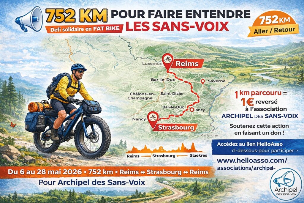 Membre engagé depuis les débuts de l’association Archipel des Sans-Voix et ambassadeur à Reims et en Champagne-Ardenne, je me lance aujourd’hui un nouveau défi, à la fois sportif et profondément humain.